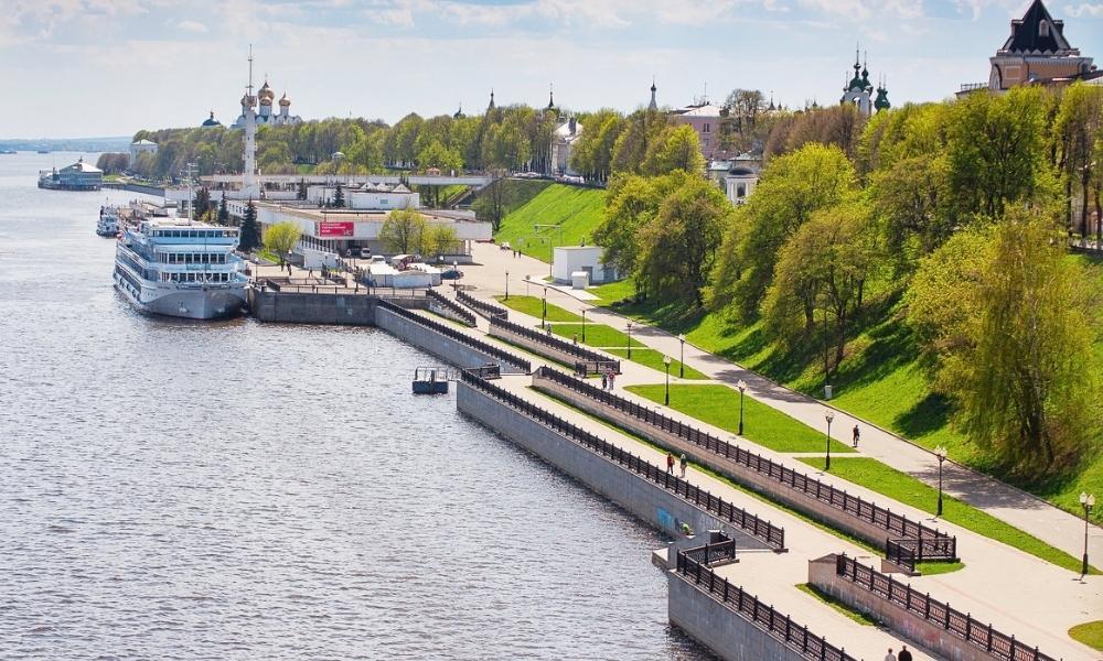 Трехкилометровый променад – первое, что встречает гостей города по прибытию сюда водным путем. Именно здесь можно видеть белоснежное здание речного вокзала, изысканные беседки, кованые ограды, и невероятную панораму Волги. Набережная имеет 2 яруса для прогулок, соединенные лестницами и спусками. Верхний пролегает вдоль улицы с кафе и ресторанами, музеями и сувенирными магазинами. Нижний отведен под прогулки, здесь есть велодорожки.