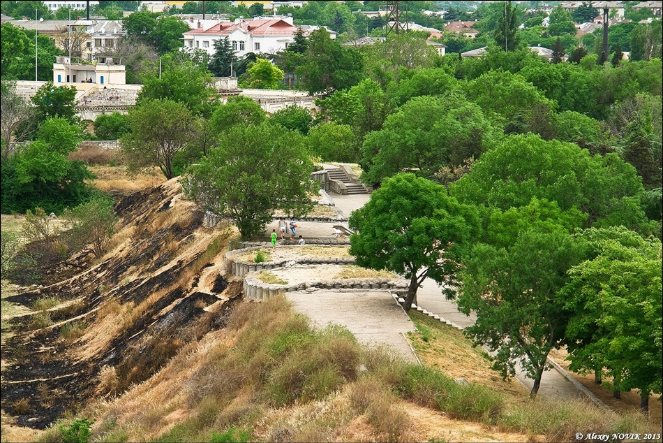 - Малахов курган — с этой высоты защищали город и в Крымскую и Великую Отечественную, о чем сейчас напоминают многочисленные памятники, различные пушки, мортиры, ядра и небольшой музей. Все это окружает большой красивый парк с балюстрады которого открывается прекрасный вид на город и Главную бухту.