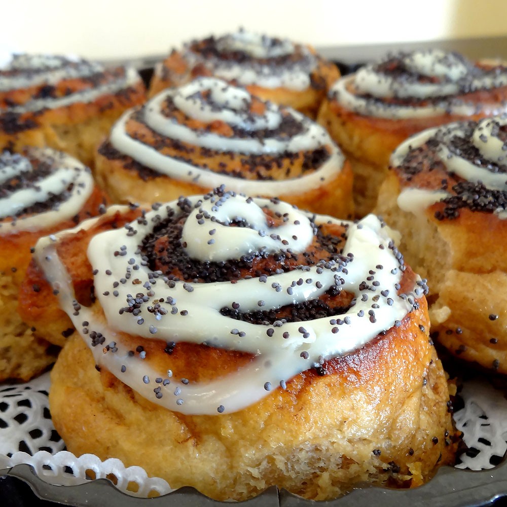 - По прошествии времени сформировать булочки, присыпать маком (не более 1 ч. ложечки на одну сдобу).