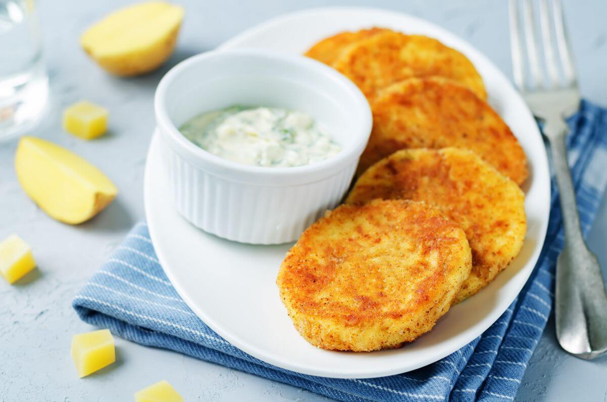 - Выложить массу на посыпанный мукой стол, скатать небольшую колбаску и разрезать ее поперек примерно на 10 частей. Сформировать 10 одинаковых по размеру лепешек. Каждую обжарить в масле до румяной корочки с двух сторон.