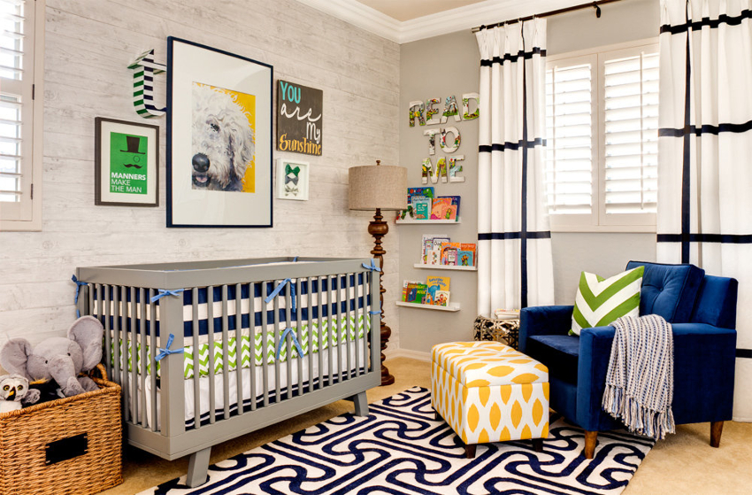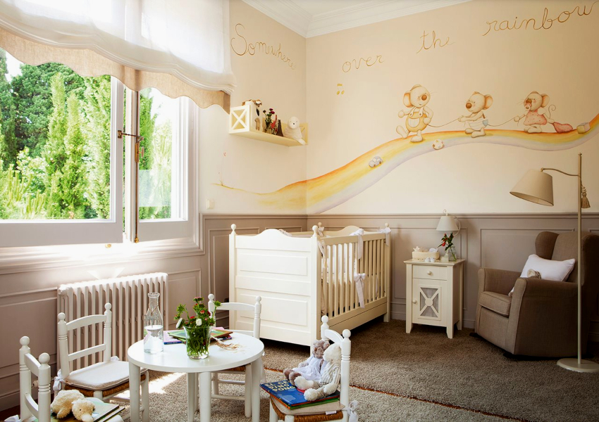 Возраст 0-3 года. Эту детскую можно оставить практически пустой: все что нужно – кроватка для новорожденного, стульчик для кормления, коврик для напольных забав, декор и занавесы, которые защитят дневной сон от солнечного света