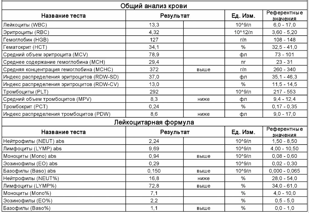 Вот так выглядит стандартный бланк общего анализа крови:
