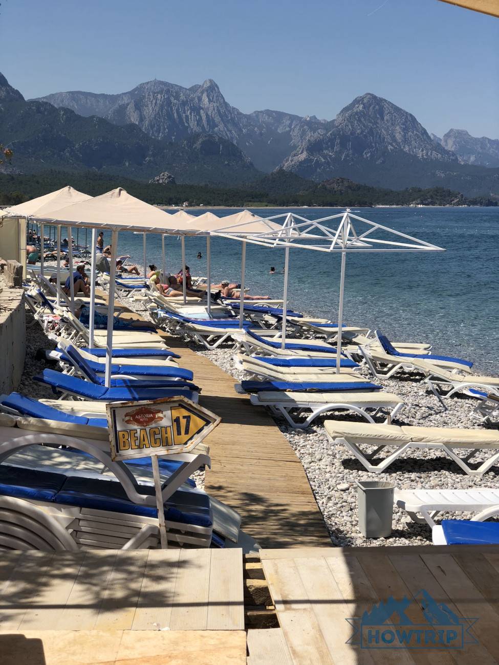 В отзывах об отеле некоторые туристы отмечают, что лежаки находятся на песке, а при входе в море – галька, поэтому детям не помешает специальная обувь. Отдыхающим с детьми особенно понравился пирс и наличие большого количества деревянных дорожек.