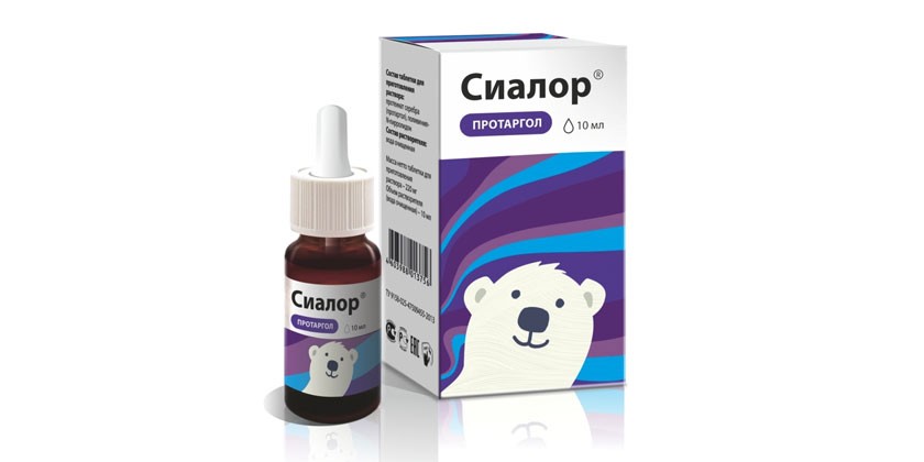 - Капли или спрей Сиалор. В них также присутствуют ионы серебра, и они оказывают аналогичное с Протарголом действие. Существует два основных отличия между препаратами – это стоимость и способ приготовления раствора. 10 мл Сиалора стоит в среднем 200 рублей. В комплекте идет таблетированный порошок и вода. Это позволяет разводить раствор дома.