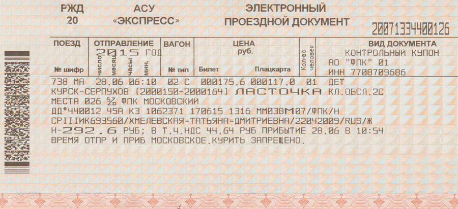И еще… при посадке в поезд ребенку, как и взрослому, нужно предъявить документ, подтверждающий его личность, то есть свидетельство о рождении.