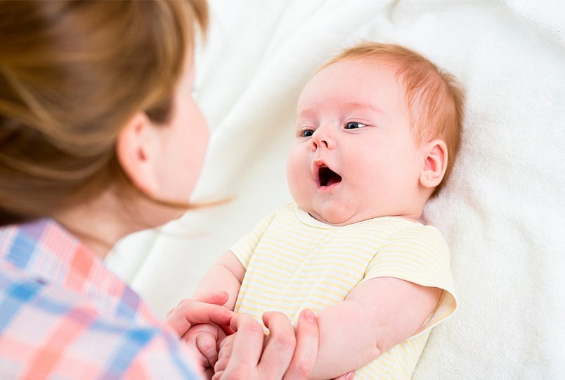 Именно в 3 месяца ребенок осваивает азы детского лепета. Он произносит звуки, и их уже можно различить. Явно слышатся согласные и гласные, прослеживаются горловые. Мамочка четко слышит бульканье, хихиканье, хныканье. Различаются интонации.