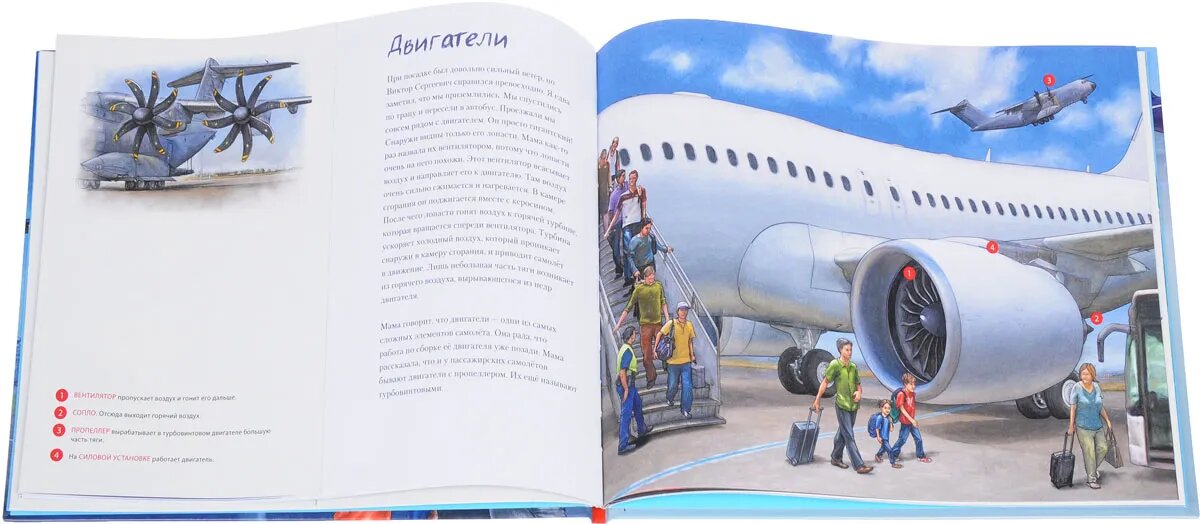 Такие книги рассказывают, как устроен и летает самолёт. Это поможет ребёнку понять, что самолёт такой же транспорт, как автомобиль.