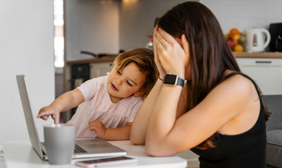 Если ребенку больше 2х лет, можно попробовать договариваться: сейчас с поработаю, а потом мы с тобой поиграем. Сигналом может быть яркий предмет на столе у мамы. Но пользоваться таким способом нужно только в крайнем случае.