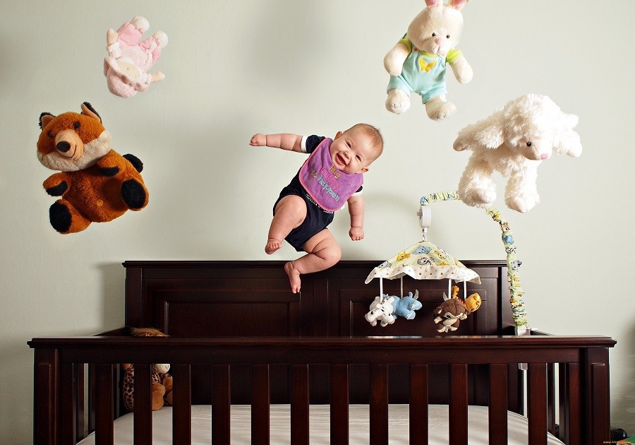 - Покупайте детскую кроватку, манежи с высокими бортиками. Даже при таком варианте мебели оставлять детишек раннего возраста одних на высоте нельзя. Вывалиться через бортик легко может полугодовалый ребеночек, новорожденный.