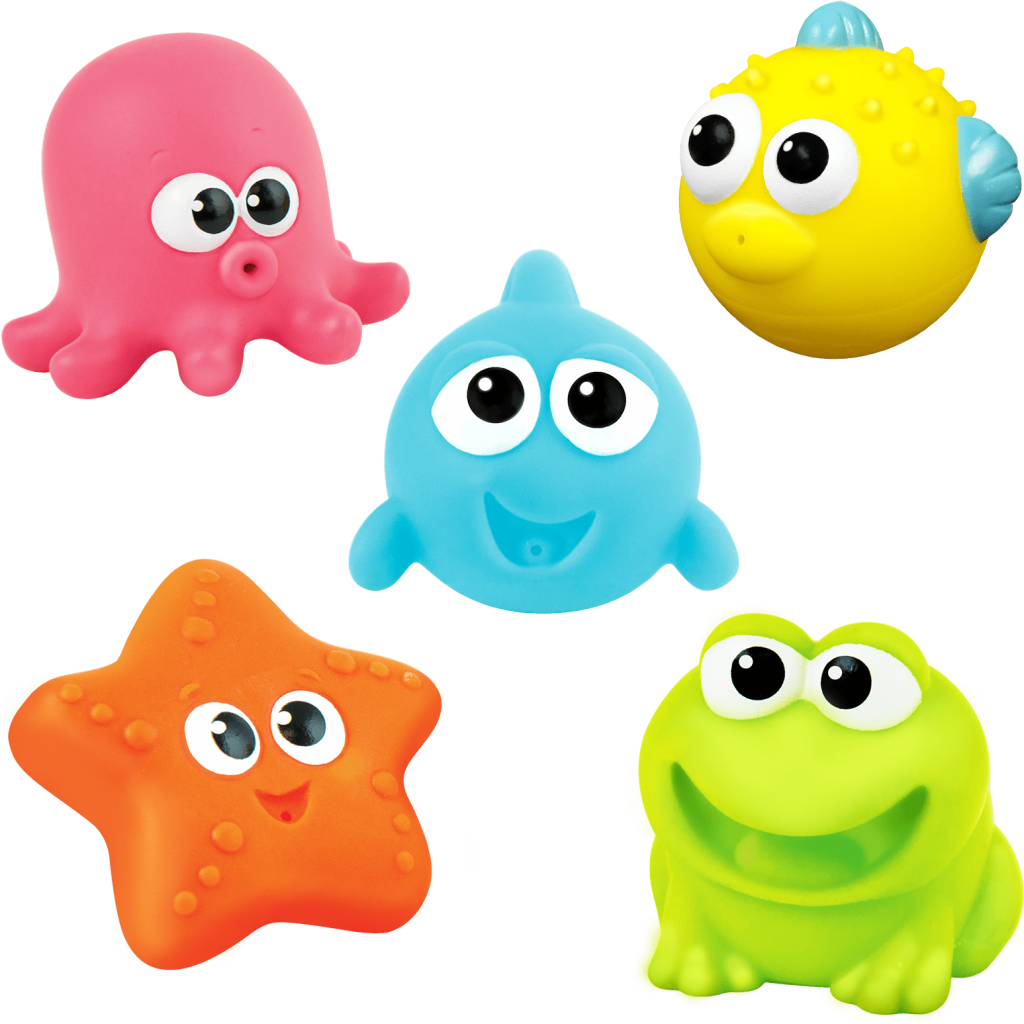 Одним из лучших вариантов игрушек для купания является небольшое ведерко с множеством пластмассовых животных, человечков и др. Ребенок сможет разместить их на углах ванны. Безусловно, огромной популярностью у детей до 2 лет пользуются специальные игрушки для ванной: