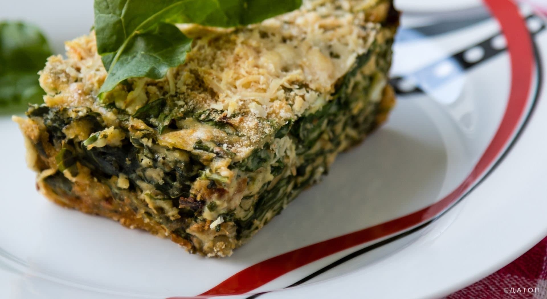 Отварить и размять шпинат, добавить лимонный сок. Яйца взбить с солью, смешать с зеленью и лапшой, добавить масло и запекать в духовке до готовности. Такая запеканка отлично сочетается со сметаной.