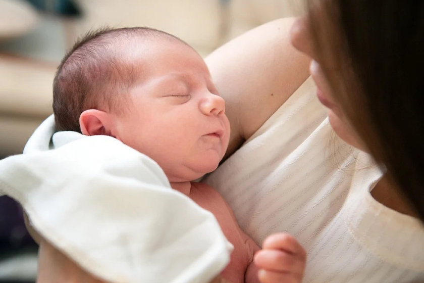 Приложить малыша к животу мамы;