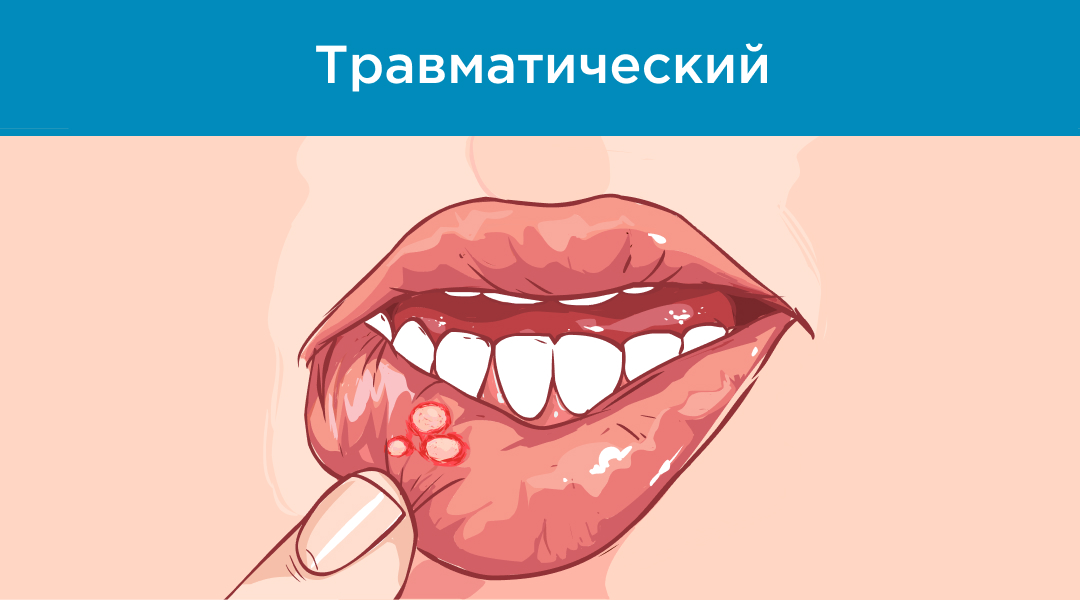 Развивается при неправильном прикусе или при ношении протезов. Вследствие травмирования слизистой острыми краями зубов или протезов появляется отек и гиперемия мягких тканей. Со временем нарастают болевые ощущения, формируются язвы и волдыри. Лечение сводится к устранению причины заболевания и местной восстанавливающей терапии.