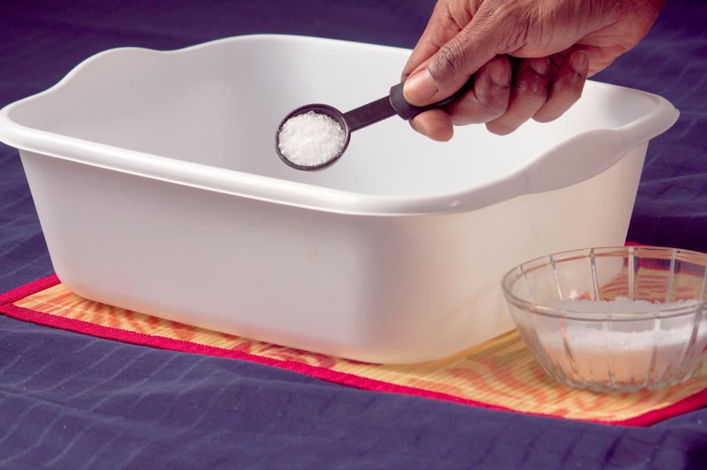 Ванночка из соли поможет уменьшить признаки недуга. Нужно в двух литрах теплой воды растворить полстакана соли. Затем вылить этот состав в таз и опуститься в него. Процедура длится около 10 минут. Вода не должна быть горячей.
