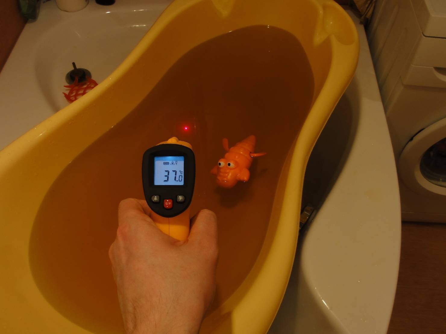- Как только градусник покажет отметку в 37-38°С, можно смело начинать гигиеническую процедуру.