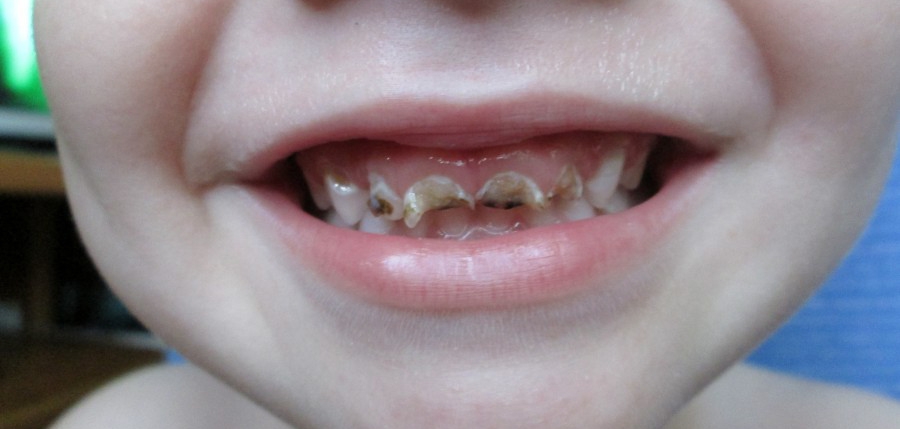 Зубы ребенка, который долго ест смесь из бутылочки, подвержены развитию так называемого бутылочного кариеса. Его развитие начинается с верхних передних резцов. Как правило, локализуется в пришеечных и контактных зонах.