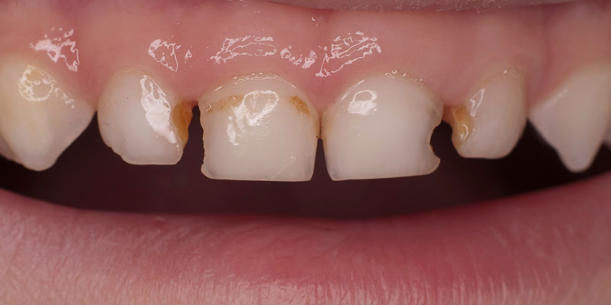 Крошение зубов не только ухудшает внешний вид, но и вызывает травмирование нежных слизистых неровными краями.