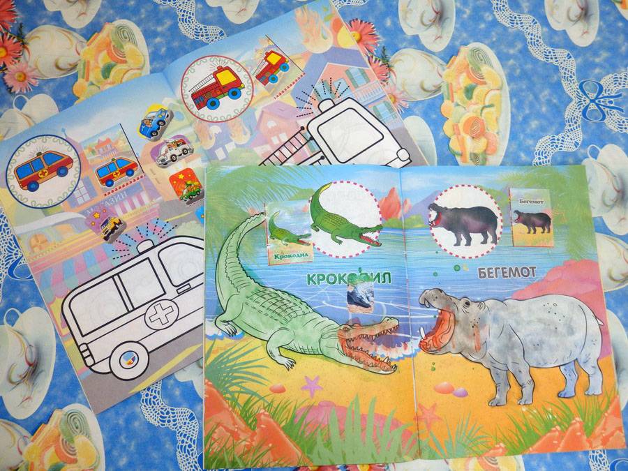 У нас в 2,8 — бум на всякого рода наклеивание. Проще и увлекательнее всего, конечно, оторвать с листа красивую яркую наклейку, и вклеить на подходящую по смыслу страничку раскраски или книги. Кажется, мы испробовали уже все возможные варианты.