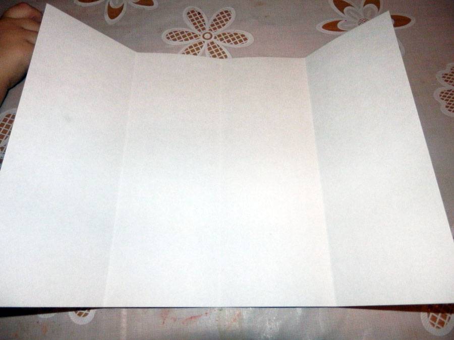 Простые домики из цветного картона понадобились нам для игр с машинками и маленькими фигурками из шоколадных яиц. Идея родилась сама собой. Для одного домика — берем один лист цветного картона. Складываем лист пополам, и каждую половинку складываем внутрь снова пополам.