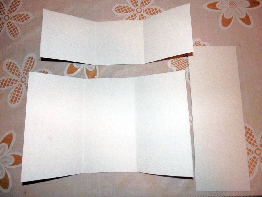 Теперь лист картона поделен на 4 равные части. Отрезаем одну дольку — это основа для крыши. Оставшиеся дольки — стены. Укорачиваем их, насколько это понадобится для будущего домика. Часть, расположенная на фото в самом верху — лишняя.
