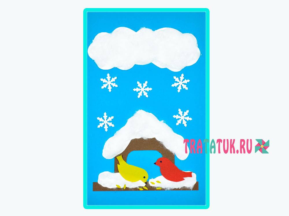 После того как аппликация будет готова, а клей подсохнет, можно предложить малышу раскрасить птичек.