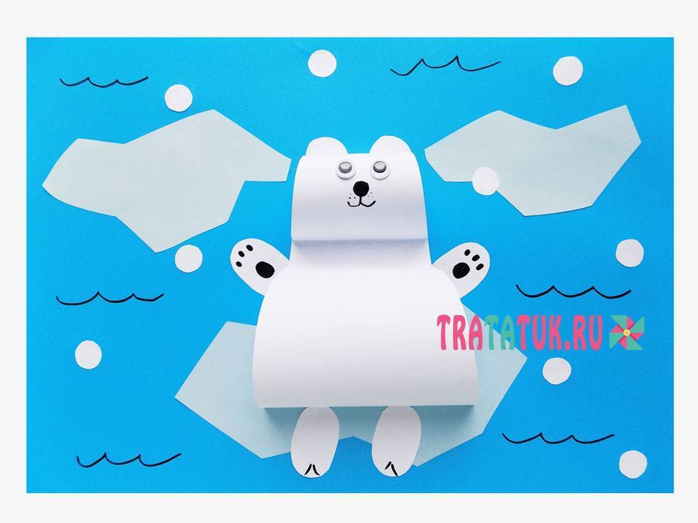 С помощью одноразовой тарелки можно сделать поделку-маску белого медвежонка. В тарелке вырезаются отверстия – глаза, поверхность оклеивается кусочками бумаги, для носа используется одноразовый стаканчик.